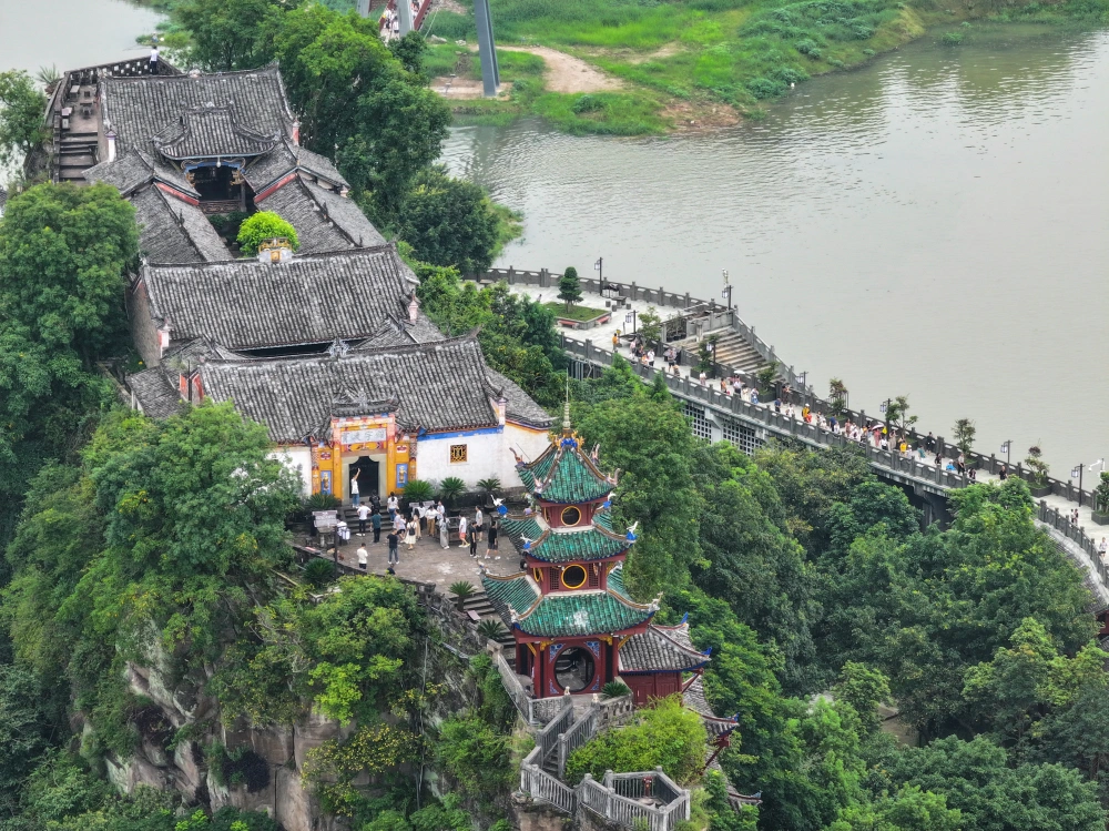 이 정상에는 고찰 천자전(天子殿), 임암(临岩)에 담장을 쌓고, 전우(殿宇)가 우뚝 솟아 장관을 이루며, 유물진열실과 오리동(鸭子洞), 유미동(流米洞), 석보처녀(石宝姑娘), 독수리(老鹰)길 찾기 등이 있다.