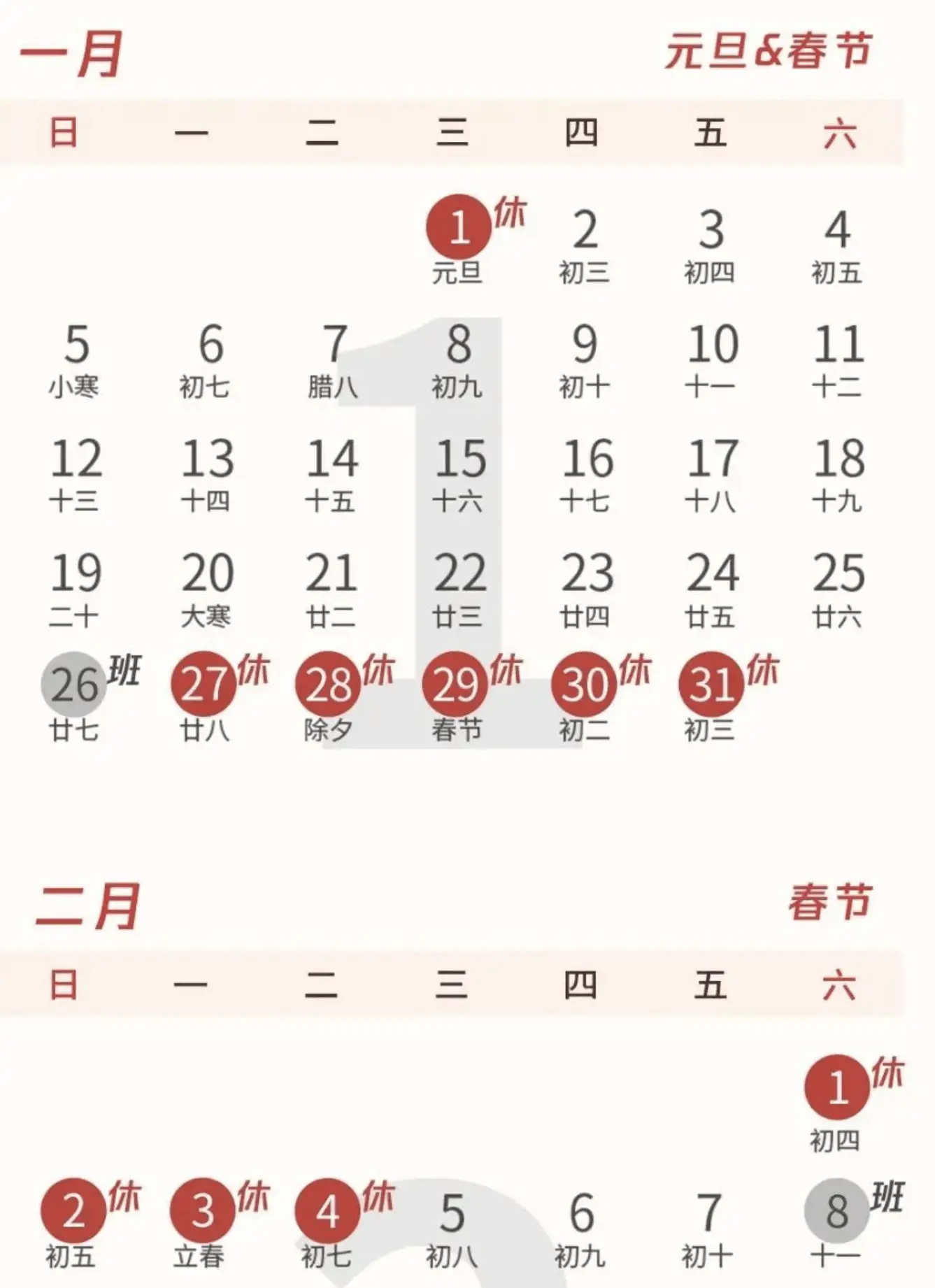 금년도 춘절 공휴일은 모두 8일이다.