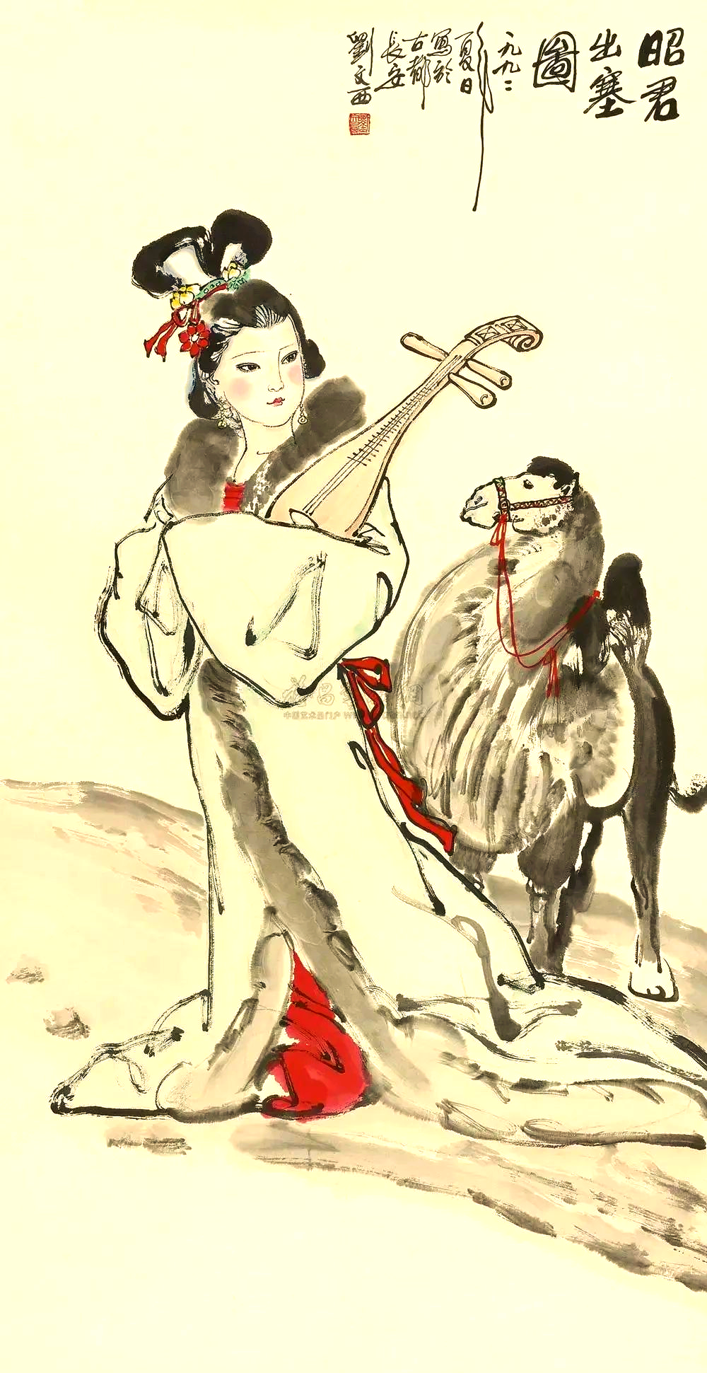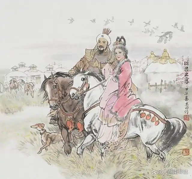 원대의 《원인명비출새도《元人明妃出塞图》》는 현재 타이베이 고궁박물원에 남아 있다.