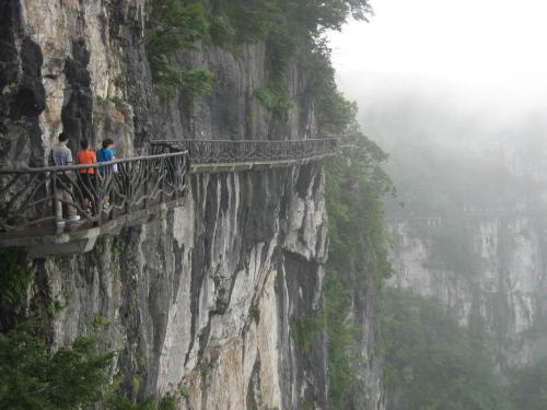 지금 우리나라관광객들은 물론 외국관광객들이 많이 찾는 이 천문산의 잔도는 다른 잔도와 달리 모든 길은 절벽의 꼭대기에 있지도 않고 절벽의 한쪽에도 있지도 않고, 모든 잔도가 만장절벽의 중간에 서 있어 절벽과 함께 기복이 심한 느낌을 준다.