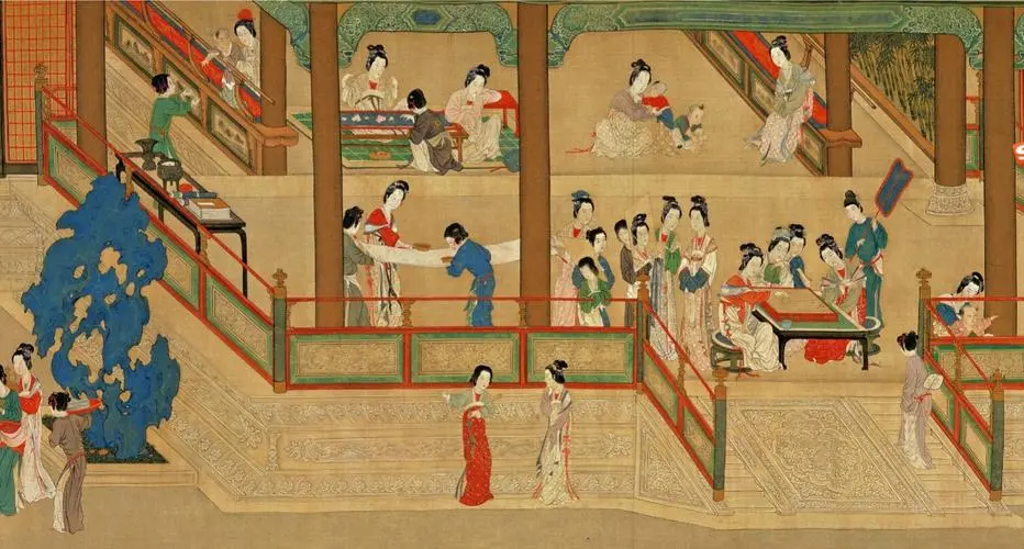 9.한궁춘효도'《汉宫春晓图》는 명明나라 화가 구영(仇英)이 그린 견본중채사여화(绢本重彩仕女画)로 현재 타이베이 고궁박물관(台北故宫博物院)에 소장되어 있다.