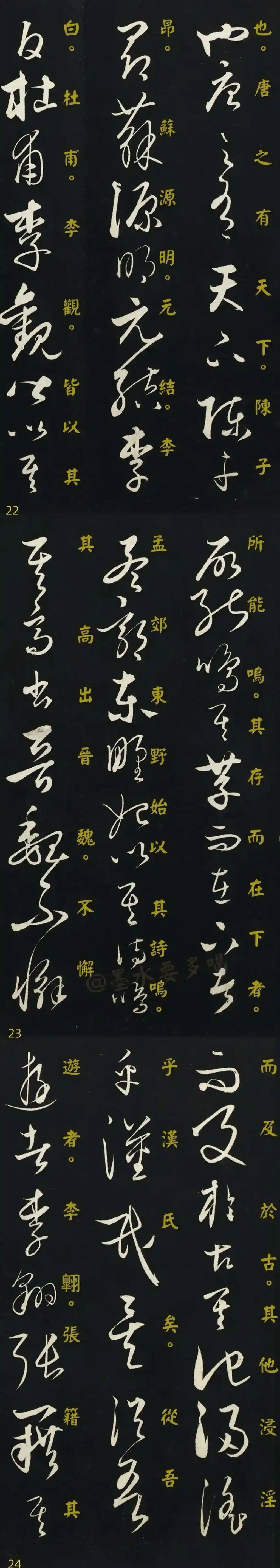 장초章草, 금초今草, 광초狂草로 나뉘며, 광란 속에서도 아름다움을 느낀다.