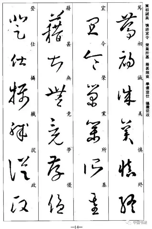 초서는 한초汉初에 시작되었으며, 그 특징은 글자의 줄거리를 보존하고 예속 규칙을 손상시키며, 방임하고 빠르게 나아가며, 초지일관草创之意의 의미로 초서草书라고 한다.