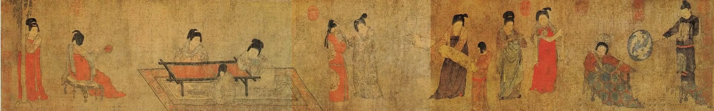 3.당궁사녀도(唐宫仕女图)는 5폭의 중국화로 저자는 당나라의 장훤(张萱)과 주방(周昉)이며, 이 그림은 당나라 여자의 중생상(众生相)을 묘사하고 있으며, 특히 당나라 귀족 부녀자의 생활 정서를 표현하여 당나라 여인화의 주요 특징이 되었으며 중국 10대 명화 중 하나로 알려져 있다.