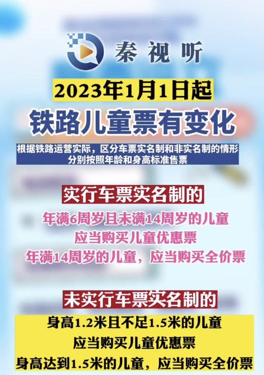 지금까지 중국에서는 어린이 기준의 입장권을 판매할 때 해당 어린이들의 기준을 “키 크기”로 정했다. 다시 말해서 기차표를 살때 해당 아이의 키를 기준으로 면제. 반표. 온표를 사야했다. 키가 1.2m이하면 무료. 1.2m 내지 1.5m미만인 아동은 아동할인표를 구매해야 하고 키가 1.5m에 이상인 아동은 정가표를 구매해야 했다.
