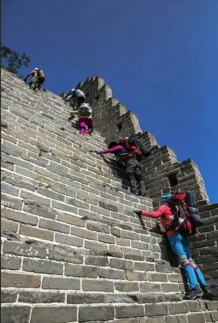 성, 남단의 산세는 매우 가파르고, 일부 지방의 만리장성은 많이 무너져 있어 등반을 해야