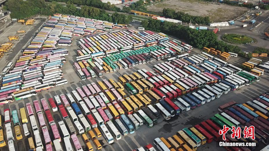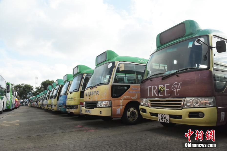홍콩 아오이푸 부두 정부 부지 주차장, 관광바, 교바, 교바 1000여 대가 수개월간 정박해 있다
