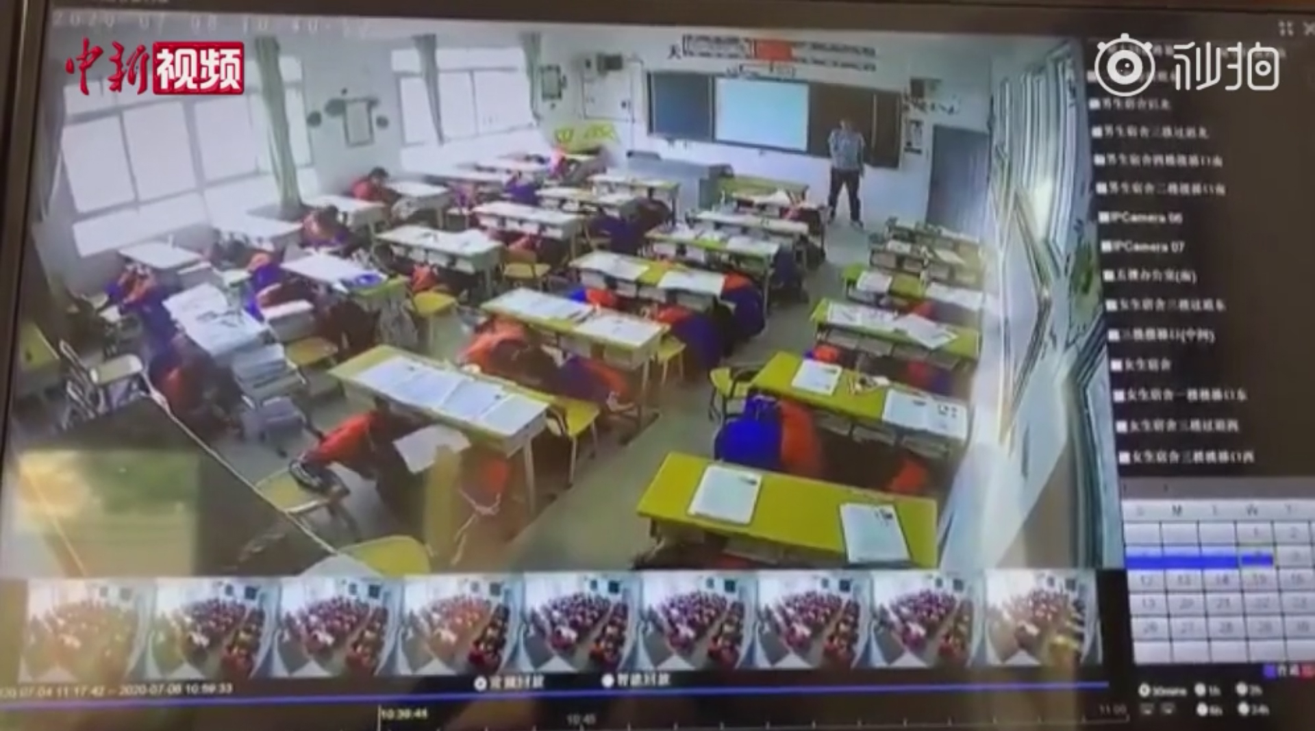 시험도중에 지진으로 인하여 책상밑으로 대피