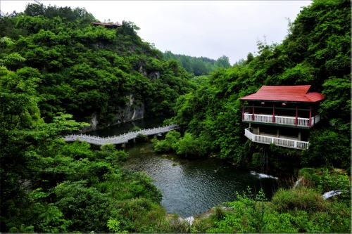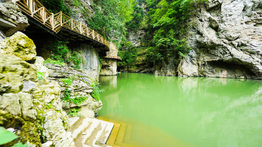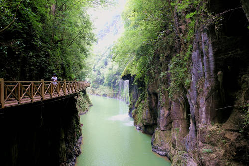 남강대협곡 양쪽의 산봉우리가 험준하여 겨우 머리 위의 푸른 하늘만 보인다.
