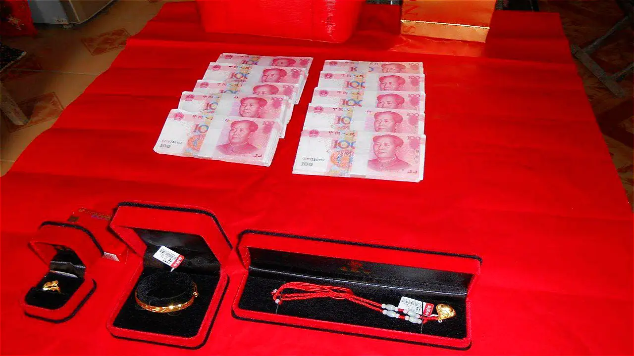 많아야 만리 도일(万里挑一)이라하여 만리(10,001위안)중국어 발음으로 (완 리)인데 베이징의 결혼은 모두 10001(만리 택일)부터시작하고 도향촌 (稻香村) 과자 2박스, 마오타이 2병, 찻잎 2박스, 과일 2박스를 주는 수도 있다.