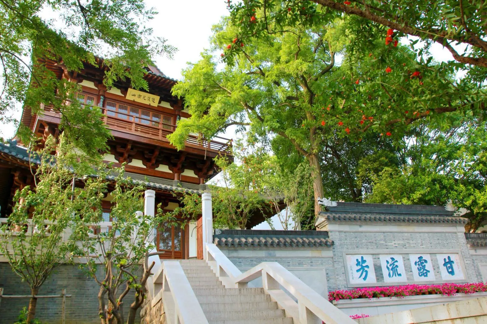 장쑤성 진강시의 베이구산(江苏省镇江市的北固山)은 베이펑 산벽에 전량무제가 '천하제일강산'“天下第一江山”이라는 큰 글자를 썼으며, 지금까지 1,400년이 넘었다.베이구산은 전면, 중간 및 후면 피크의 세 부분으로 구성된다.