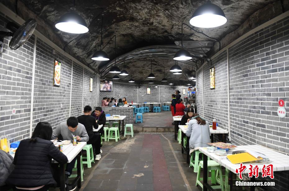 충칭(重慶)의 한 방공호가 '삼치강호'로 변신한 가운데 훠꿔는 물론 붕어전골, 매운 갈비, 매운 새우 등 얼큰한 계열 음식들이 입맛을 사로잡고 있다.