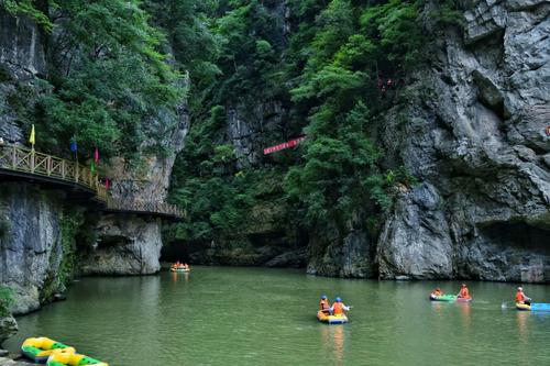 남강대협곡 양쪽의 산봉우리가 험준하여 겨우 머리 위의 푸른 하늘만 보인다.