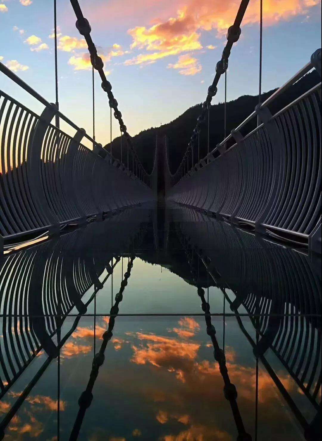 천 미터 높이의 유리 위에 서 있으면, 모든 사람이 마치 공중에 떠 있는 것처럼 보이고 유리 너머로 내려다보면, 산간의 아름다운 경치를 볼 수 있을 뿐만 아니라, 동시에 긴장과 짜릿한 쾌감을 느낄 수 있다.