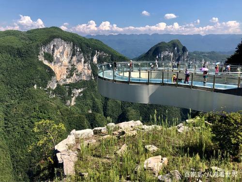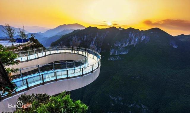 전면 유리로 만들어져 바닥과 가드레일이 모두 뚫려 있고 발 아래 700여m 깊이의 무가림 협곡이 있다.