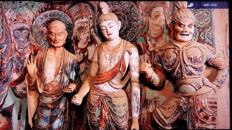 1987년 12월 세계유산으로 등재된 막고굴의 벽화는 석가모니의 생애와 전생의 선행을 보고 희생한 불경 이야기를 담고 있는데 부처, 천왕, 역사, 소천불의 화상과 우인, 비인, 화조, 동물 등도 있다.