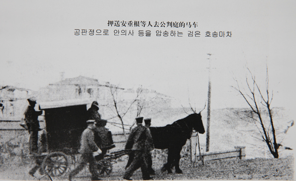 공판정으로 안의사 등을 압송하는 검은 호송마차.