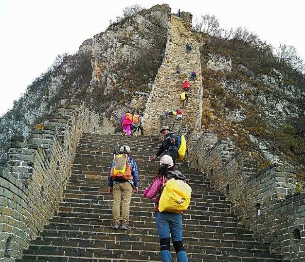 성, 남단의 산세는 매우 가파르고, 일부 지방의 만리장성은 많이 무너져 있어 등반을 해야